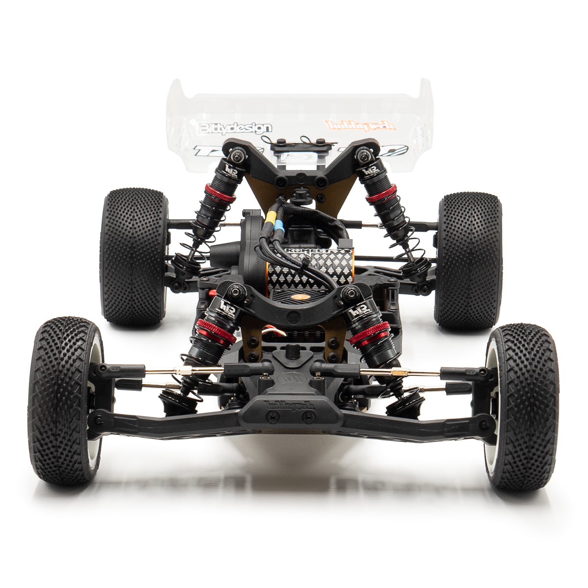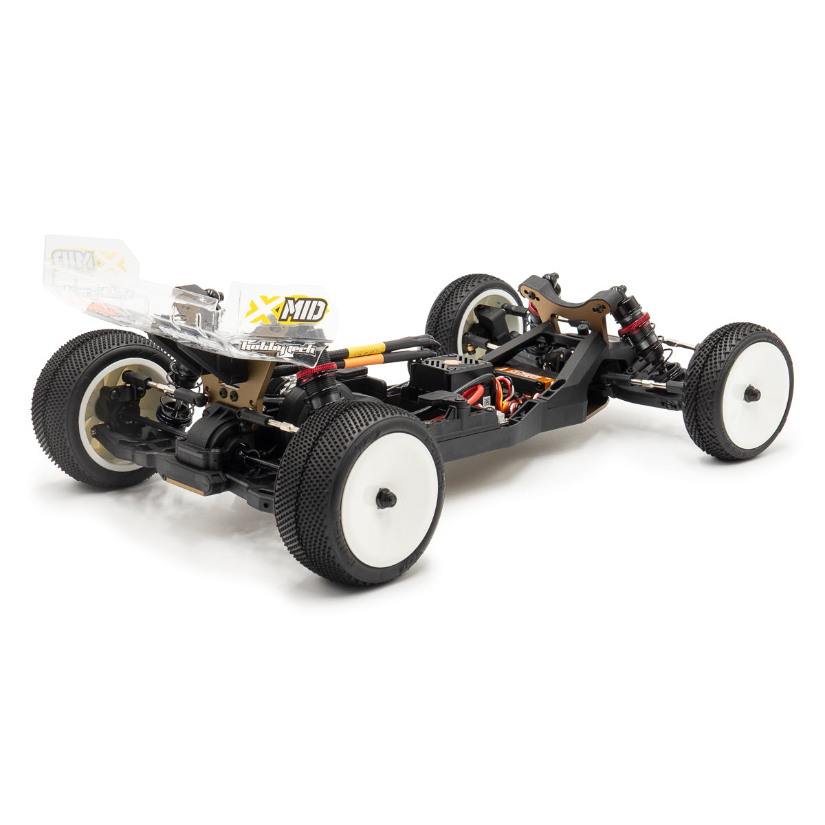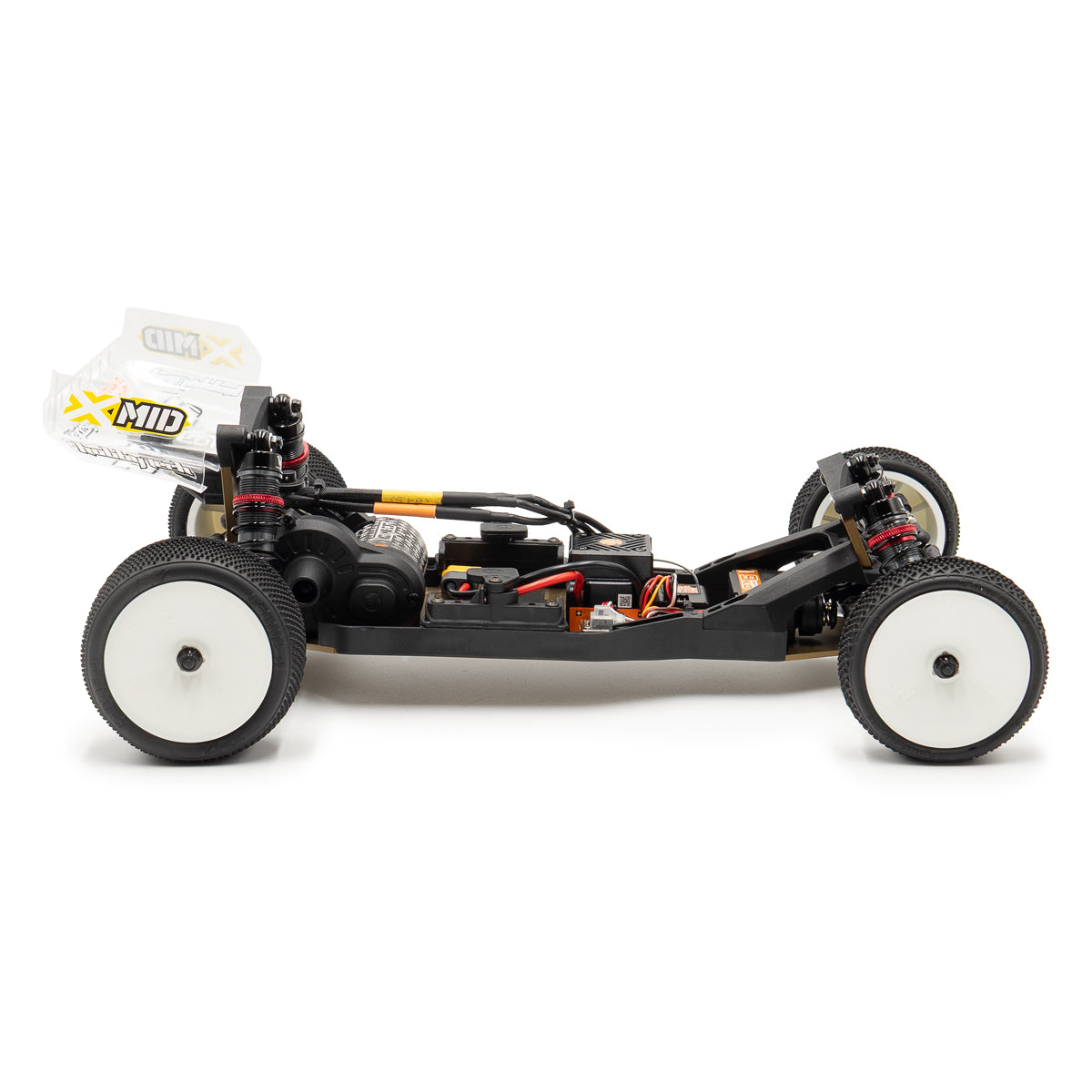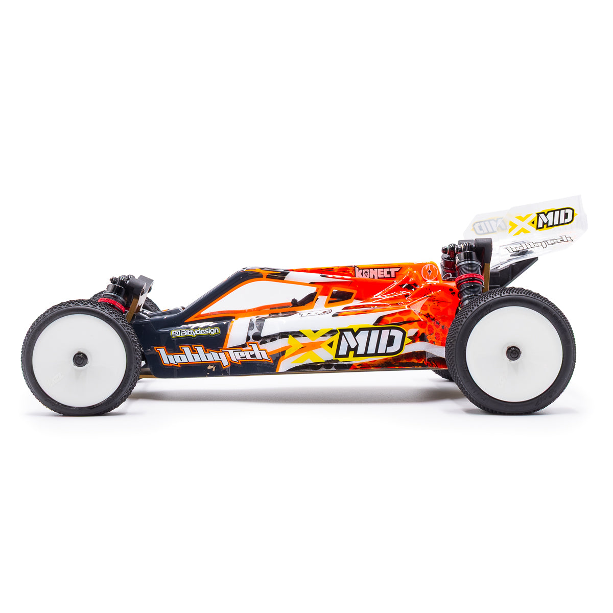 The X-Mid comes equipped with a Low Profile servo, a Konect KT3X radio system, and TZO competition tires, making it race-ready from the start.